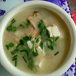 把葱姜蒜切好,放入锅中翻炒,再放入煎好的鱼轻轻翻炒,然后倒料酒、醋轻轻翻炒,再倒入烧好的开水,盖过鱼2-3倍的水,大火煮10分钟左右,再转中小火煮10分钟。出锅前五分钟放调料。