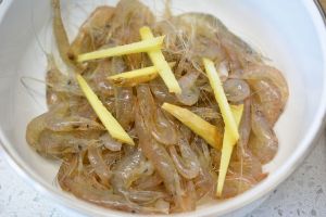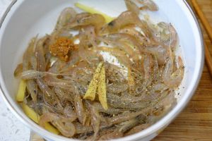 小河虾洗净,控干水分加入米酒腌制5搅拌均匀,