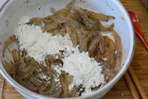 挑出姜丝,加入玉米淀粉和面粉搅拌均匀