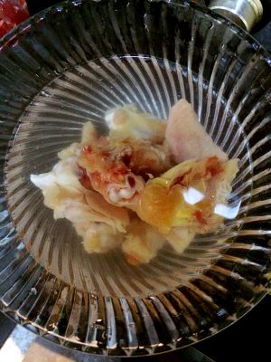 锅里装冷水下鸡骨 水烧开 捞出鸡骨 (只要鸡骨 水倒掉)