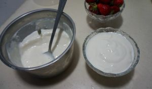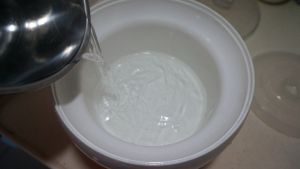 将烫桶的热水倒入一些进外桶内,一会儿热水就能变成温水,不用担心它会把酸奶菌烫死