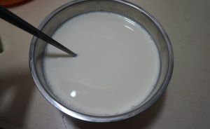 将鲜牛奶倒入内桶中,再倒入酸奶菌