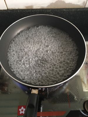 水跟白糖一起放锅里煮开,冒大泡泡后 转中火慢慢熬