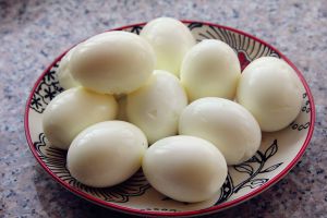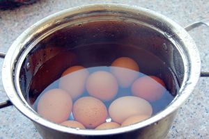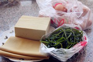 豆腐比较耐炸,在炸豆腐的过程中,把鸡蛋剥壳。
