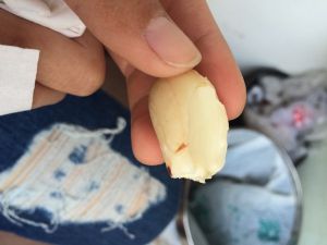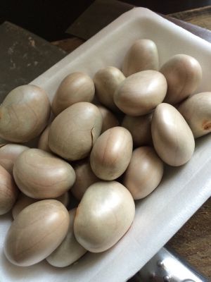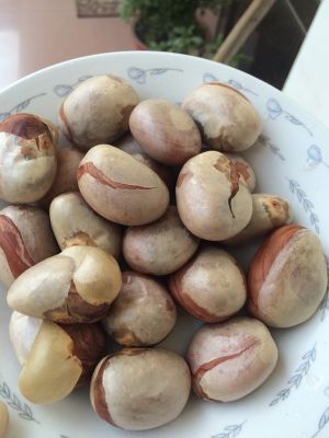 吃完菠萝蜜肉,把菠萝蜜核的外层膜拿掉,并用水清洗一下,完成后如图。