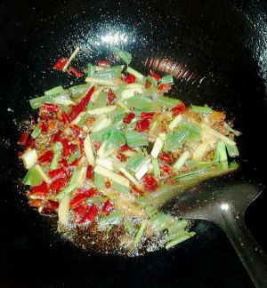油热后放入适量豆瓣酱煸炒,然后下入花椒,葱,姜,辣椒稍微煸炒一下后放入牛肉粒