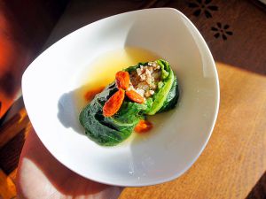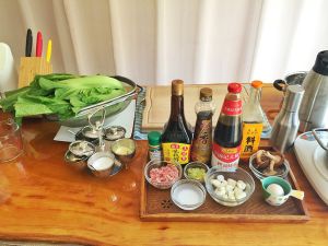 今天选用的不是白菜(因为我嫌白菜不绿),而云南的一种叫 大苦菜 的绿叶蔬菜,叫苦菜其实并不苦、感觉有点我们小白菜的清爽味。咱们把叶子都切成这个形状,粗硬的梗子不要。如果您用白菜切成扇形即可,我是觉得两边的叶子也都能卷起来,尽量多吃点蔬菜嘛。