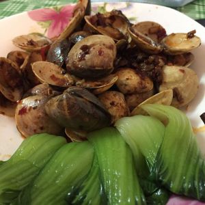 放入蛤蜊,盐,酱油,料酒,翻炒2分钟后放适量水,小火焖5分钟!