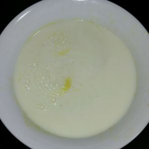把煲开的水牛奶稍微放凉到80度左右,把水牛奶冲到姜汁里面,这样就是撞奶,用盖子盖一小会儿,不要搅拌。