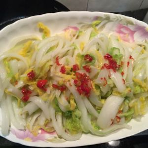 熱油后放蒜蓉爆炒,加入娃娃菜翻炒至軟熟加入點水,炒熟后裝盤。我的辣椒醬是現成的,所以淋在表面。如果是現切的辣椒可以和蒜蓉一起爆炒后加入娃娃菜。如果怕上火就在最後加入。