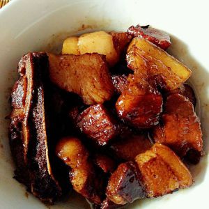 锅热放适量油,放八角桂皮爆香再放入五花肉加入酱油炒至两门微黄,这样的话五花肉香而不油腻。加热水盖过五花肉再加冰糖生姜大火烧开后改小火慢炖50分钟。