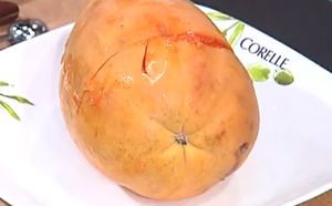 把木瓜放在一个耐热的盘子上,把它放到蒸箱里蒸10分钟,(也可以放到笼屉或者蒸锅上蒸15分钟)就大功告成了。