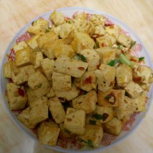 继续翻炒一分钟即可出锅。美味的家常豆腐就好了