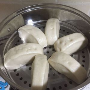 蒸锅里装好冷水!蒸盘用刷子一层油避免粘锅!再排上馒头胚!二次发酵20分钟