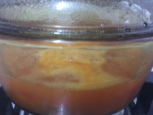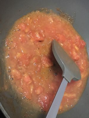 然后加入水,炒成番茄酱一样。大概3分钟左右