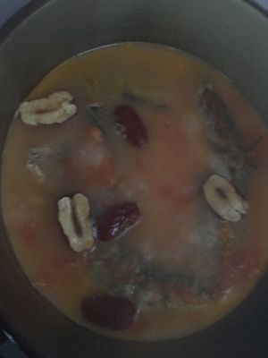快煮好后放入红枣,尝尝味道是否合适,因为刚刚腌制过了,如果不够味可以再加一点盐