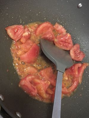 番茄去皮切下后放入刚刚那个油锅里炒一下