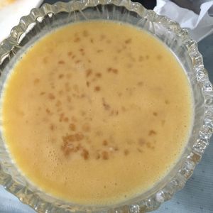 打好后倒入碗中 放进刚从冷却好的西米