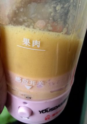 切块的芒果一半和椰汁打成糊