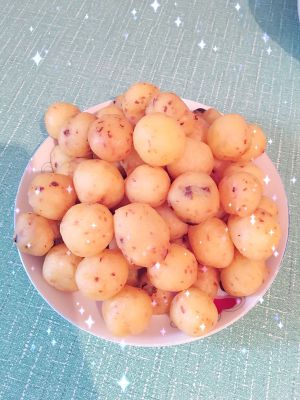 在手里团成小球,放在油锅里炸至金黄表面金黄即可