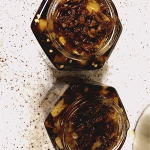 等瓜脯和酱料凉了以后,倒在一起搅拌均匀后,装瓶放冰箱