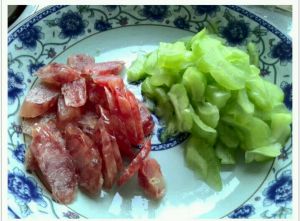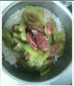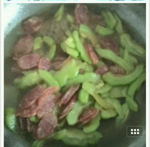 苦瓜先放进另外的锅里煮,大概7分熟的时候,放进腊肠和黄豆酱酱油等调料一起翻炒2分钟