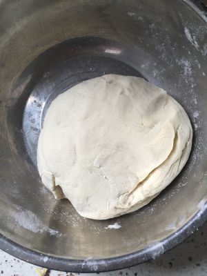 从面包机里取出发好的面团,加入面粉揉光滑,盖上保鲜膜,醒20分钟左右。