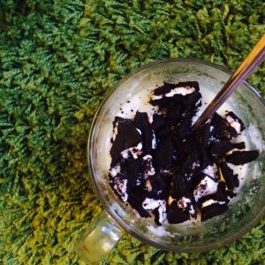 2、把奥利奥压碎放上去。简单又好吃。