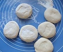将饧好的面团揉匀,搓成长条,下成一个个的小剂,按扁。