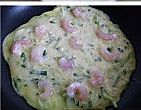 把腌好的虾仁,放在饼上,待面糊凝固。