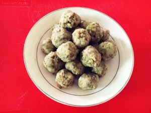 绿豆泡水4小时以上,然后放入锅中煮熟,中间加冰糖,煮至豆子开花汤汁收干,然后锅底放少许油放入煮好的绿豆炒干即成。搓小圆球待用。