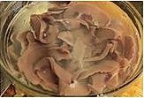 待粥差不多熬好的时候,把猪腰片倒进去,老姜会浮起,捞去,放入点新鲜的姜丝,加盐,喜欢的再加点酱油上色,猪腰放进去开始煮十分钟足够。