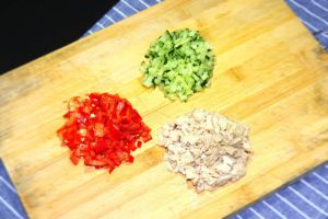 甜红椒和黄瓜也分别切丁备用