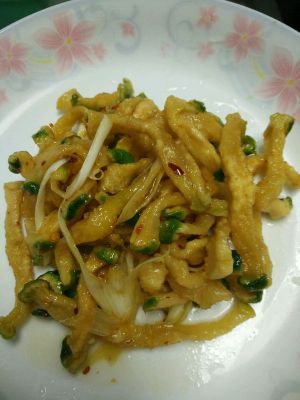 滤掉水,放入葱花加点酱油,放点辣椒面,喜欢辣的可以多加点。