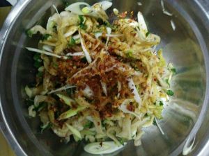 在加点香油,醋。拌一下。