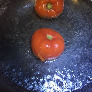 烧半锅水,将西红柿放入锅中滚动去皮