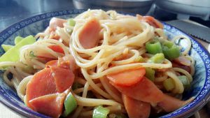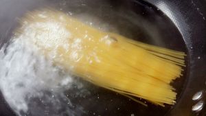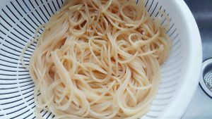 先烧开水,水开后放入意面,煮10分钟左右,煮透了就可以了,喜欢软的可以多煮一会会,恩,最好加点盐,一起煮