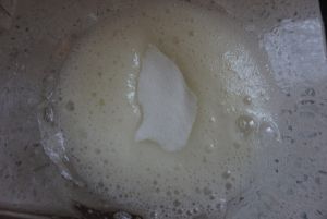 过筛好的粉类混合物加进蛋白里,用翻拌的手法拌匀,一定不要画圈蛋白会消泡的,蛋白消泡也就失败了。