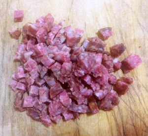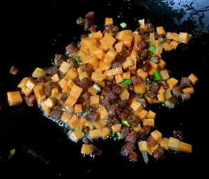 爆香后加入香肠快速翻炒,香肠也会下一些油脂特别香