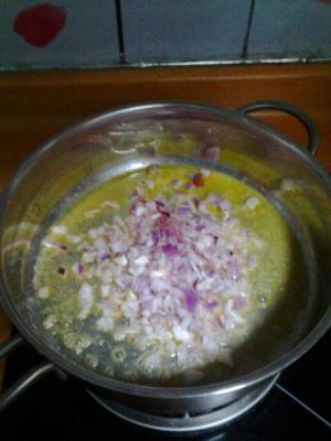 投人洋葱丁和大蒜末,翻炒1分钟左右