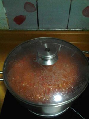 盖上锅盖,转小火煮20分钟,煮制过程中不时打开锅盖翻炒以免糊底,煮好后,感觉水份还较多,转大火收汁成酱,加入盐,翻炒即可出锅