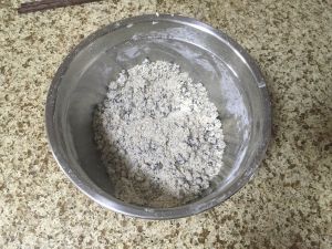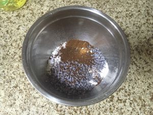 所有粉类大集合。我用的是耐高温的可可豆,没有的话可以直接用平时吃的巧克力,最好用66%以上的黑巧克力切成小块,吃起来可给力了。