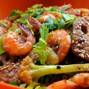 将炸好的所有食材倒入锅中,用中火翻炒,