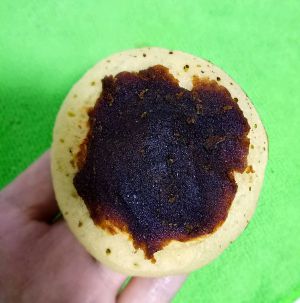 将豆沙抹在颜色浅的那一面上
