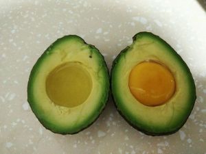 蛋黄,蛋清分离,分别装入牛油果中,淋上香油;