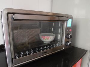 送入烤箱发酵,烤箱内记得放碗温热的水。烤箱开发酵铛即可