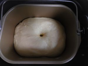 选择发酵功能 时间设置为25分钟,25分钟发酵结束后 ,让面包机利用余温 将面团发酵到两倍大即可!