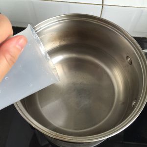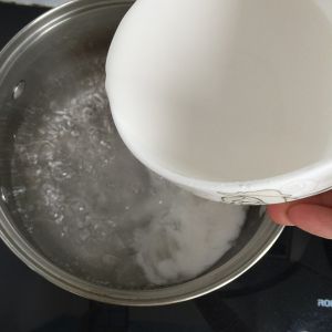 冷藏一夜,倒出凉粉切条,加喜欢的配料即可