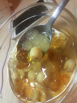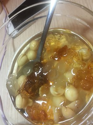 雪莲子烧开后在放桃胶 一起煮有10分钟到15分享,记得烧开后关小火,