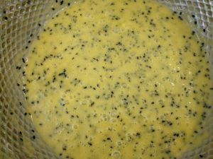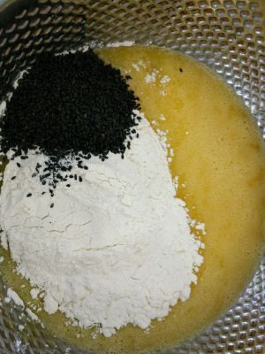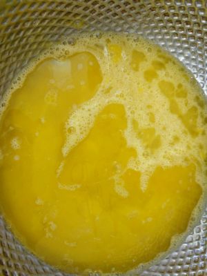 把黄油隔水融化加入蛋液中(黄油也可以用微波炉热30秒左右化成液体)搅拌均匀